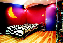 柔和的燈光使臥室充滿溫馨,月形燈與多個小射燈猶如星月交輝相映成趣,浪漫的氛圍使房子主人的文化品位含蓄地表達(dá)出來。