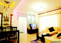 客廳的頂燈顏色與家具有著某種協(xié)調(diào)與呼應(yīng)。而用餐區(qū)的燈飾也很符合環(huán)境。