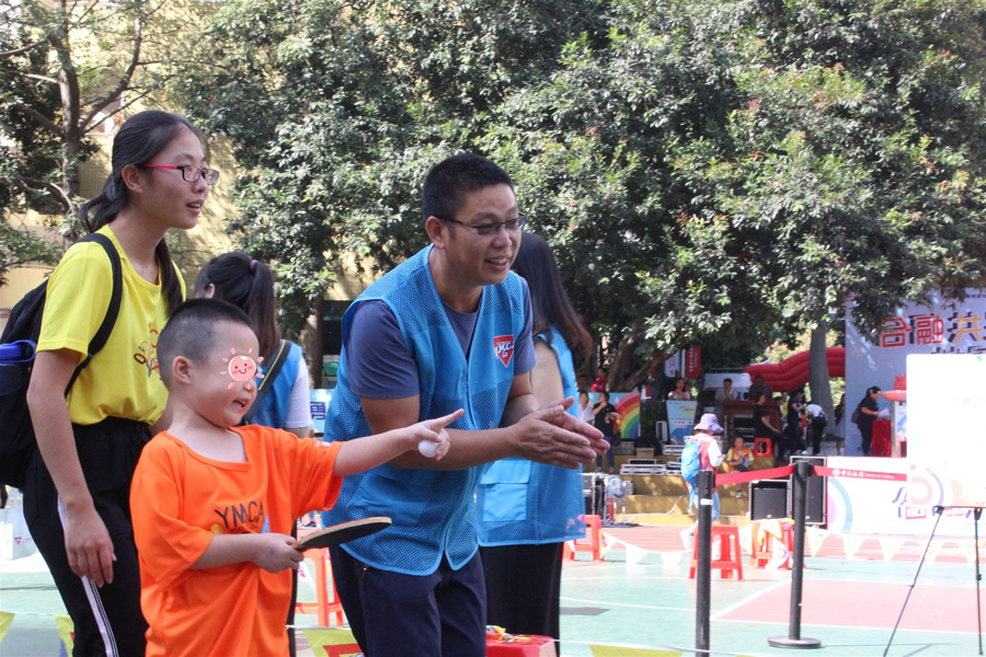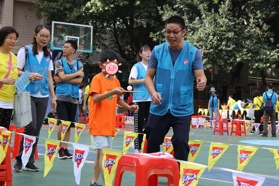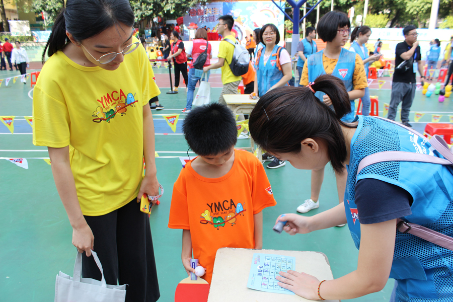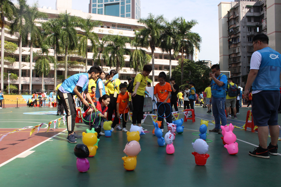 在運(yùn)動(dòng)會(huì)上,倍爾康的義工們參與負(fù)責(zé)的游戲項(xiàng)目是——快樂乒乒乓乓。