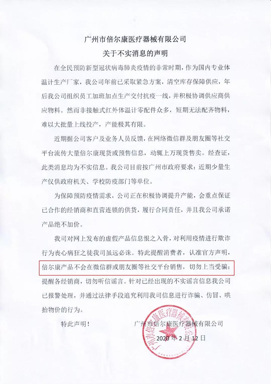 倍爾康鄭重聲明:倍爾康產(chǎn)品不會在微信群或朋友圈等社交平臺進(jìn)行銷售!