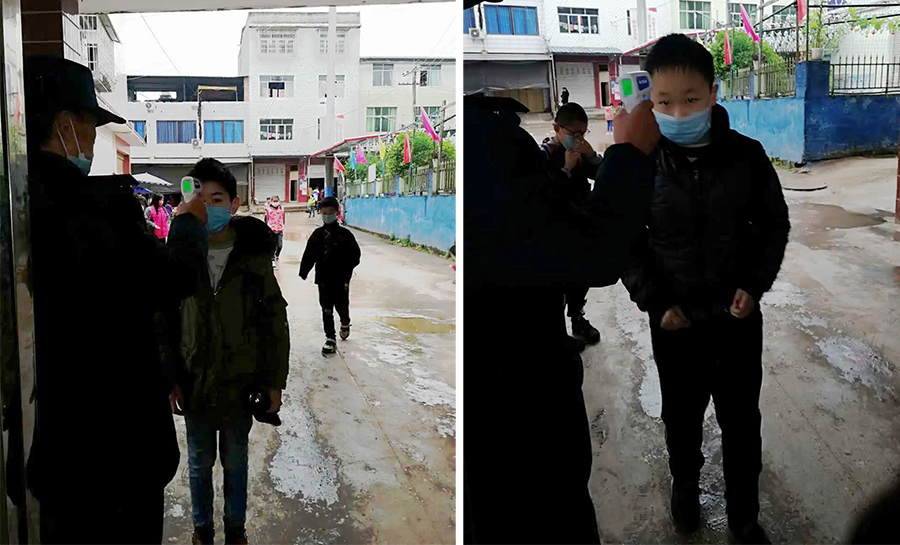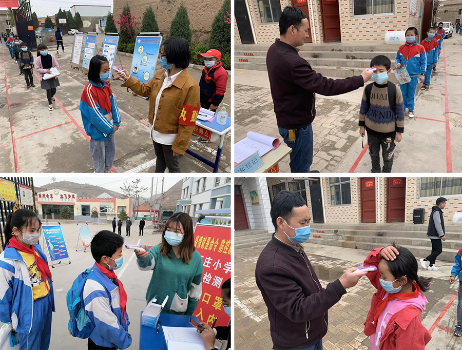 四川省樂至縣也在4月開始了復(fù)課,校門口測量體溫后才能進(jìn)入校園。中心小學(xué)的老師說,用非接觸式紅外體溫計測量體溫,不需要近距離接觸就能測量,非常安全,學(xué)生們也愿意配合。