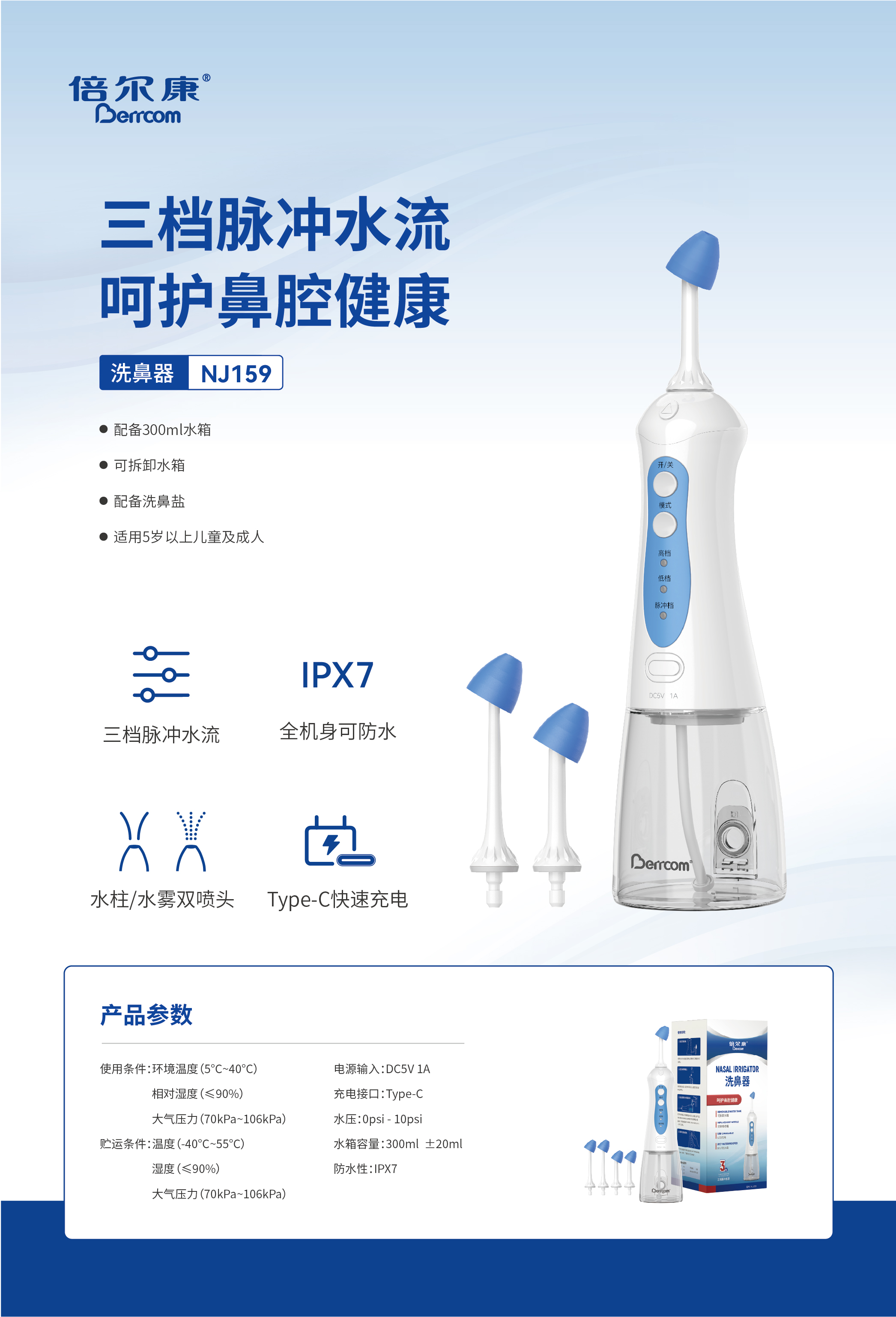 三檔脈沖水流,呵護(hù)鼻腔健康
