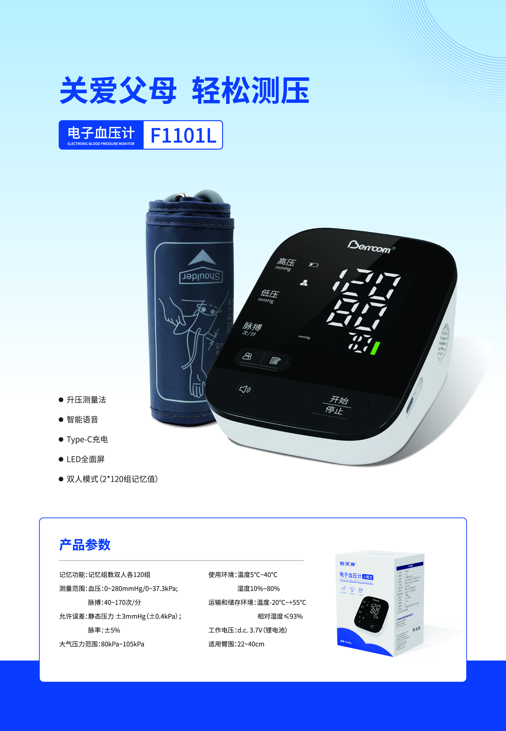 上臂式電子血壓計(jì) F1101L